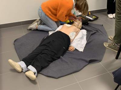 Na het theoretische deel mochten de medewerkers zelf de aangeleerde stappen toepassen op reanimatiepop An. Er werd aangeleerd hoe iemand correct in een stabiele veiligheidshouding gebracht kan worden, hoe hartmassage en beademing gebeurt en ook hoe een AED-toestel correct gebruikt wordt.